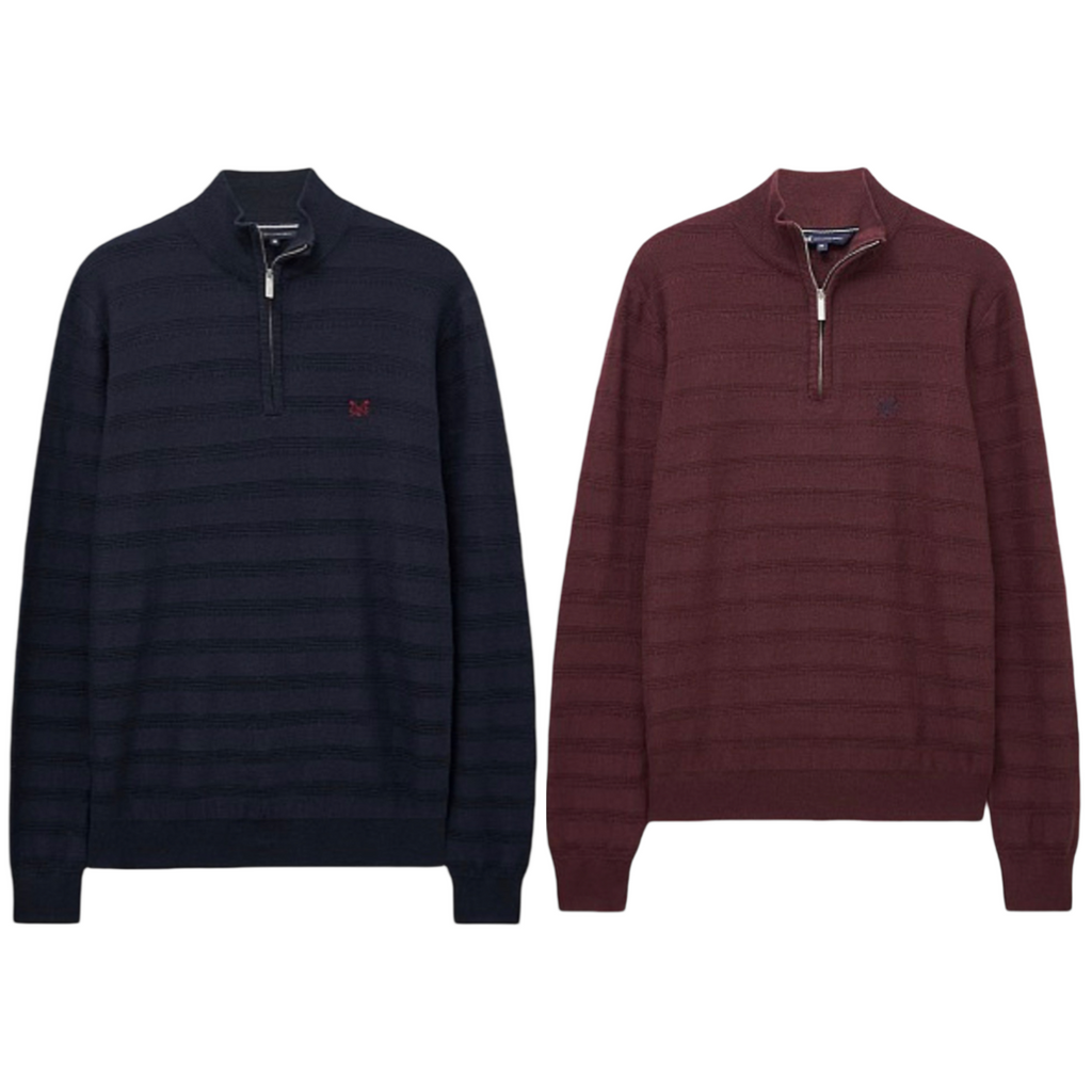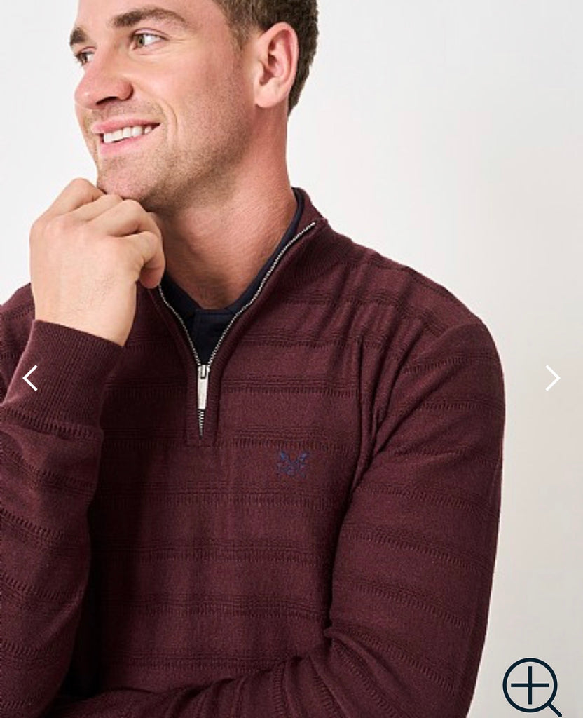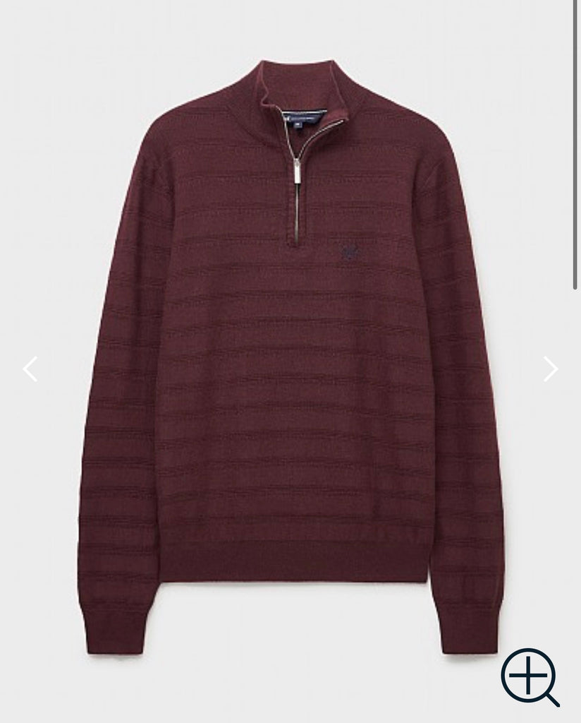 A quarter zip jumper in burgundy. Crafted from a cashmere and silk blend for a supersoft, luxurious feel - you'll want to wear this over and over. We've designed this knit with a leather-look branded zip pull, ribbed hems to lock in warmth and our crossed oars neatly embroidered on the chest. The ultimate final layer, just style with chinos for a polished week-to-weekend ensemble.